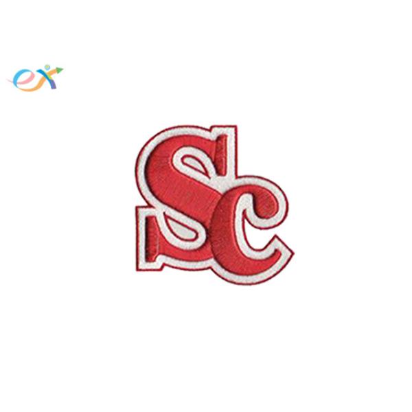 OEM Custom Polyester K Alphabet Iron On Embroidered Red Letter SC Patches With Embroidery